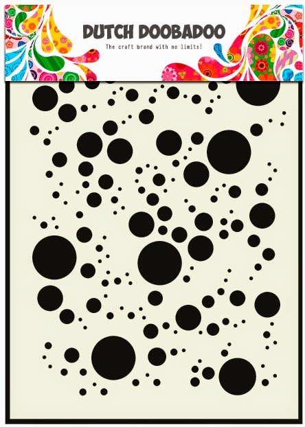 De achtergrond is opgebouwd uit verschillende lagen waarbij ik natuurlijk de leuke masks van Dutch Doobadoo heb gebruikt. Hier zie je stars, mosaic en bubbles.